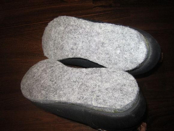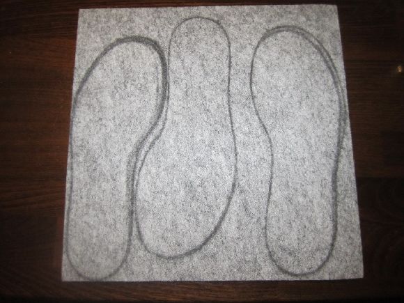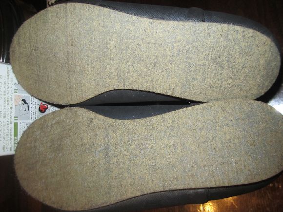 最初にへらでフェルトに均一に塗り10分ほど放置しておきます。これは慌てずに説明書の指示通りに行ってください。片足づつ行った方が良いかと思います。