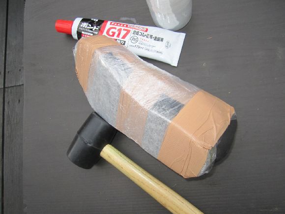 ここではぐるぐる巻きにしてゴムハンマーで叩いて圧力をかけて接着を強くします。